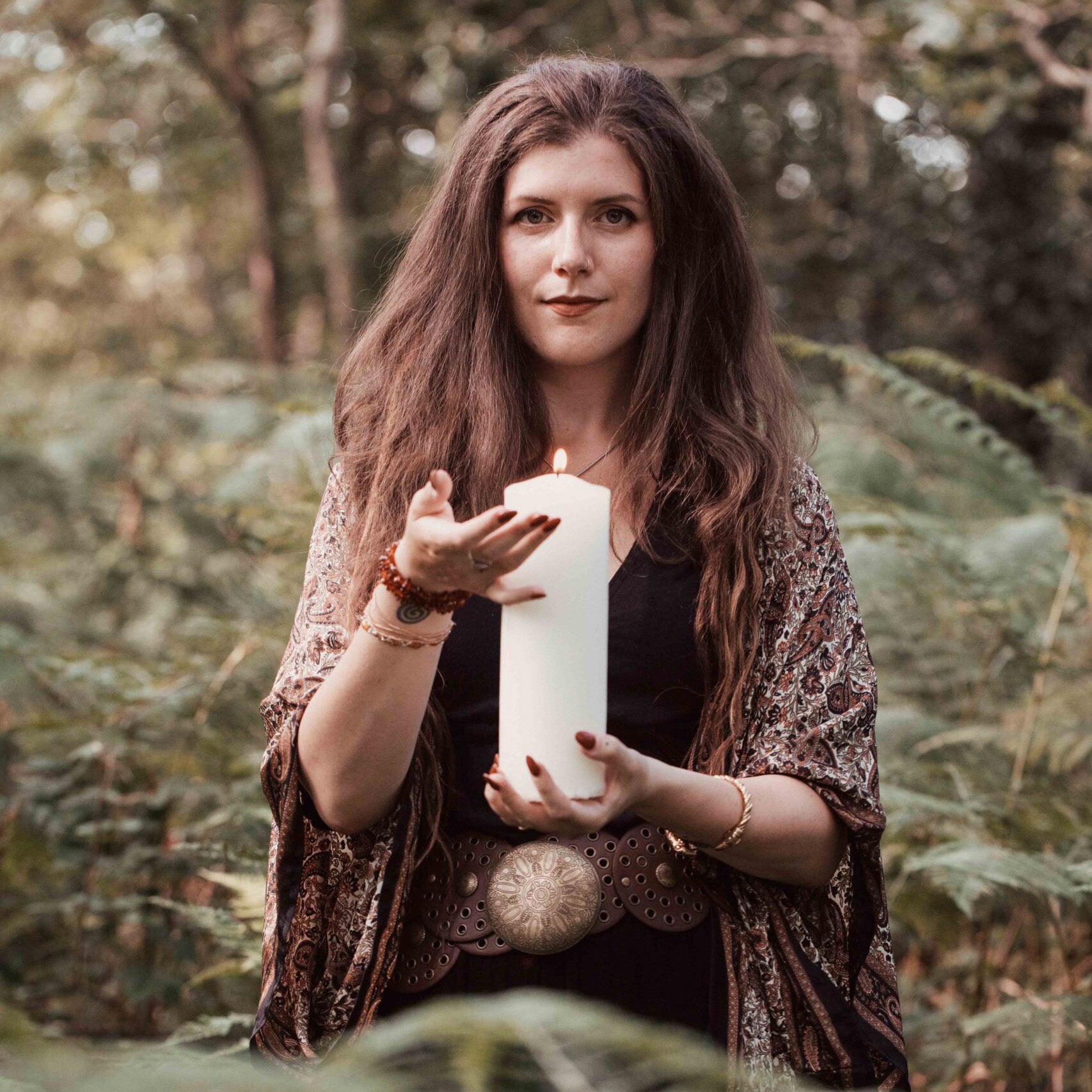 A young witch sets off on an incredible journey across four realms, each the embodiment of a season. Throughout this magical adventure, cadenced by the sabbats, the girl must face trials and problems, meeting quirky characters and fantastic creatures that will help her along the way. This one-of-a-kind tarot is the visual representation of the Wheel of the Year, a true narrative experience to delve into the mysticism of nature and its never-ending cycle.